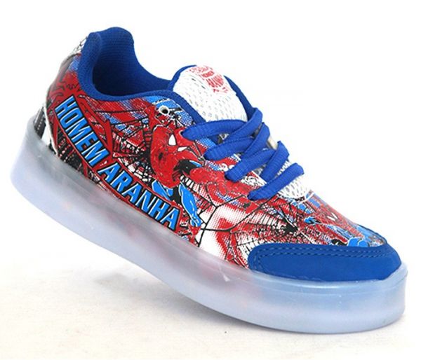 Tênis Infantil Led Personagens Homem Aranha Azul